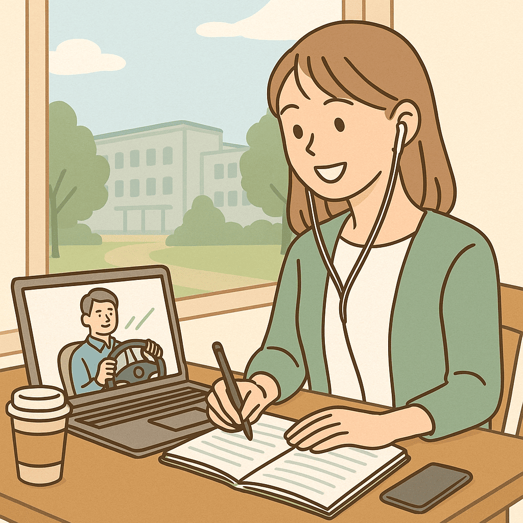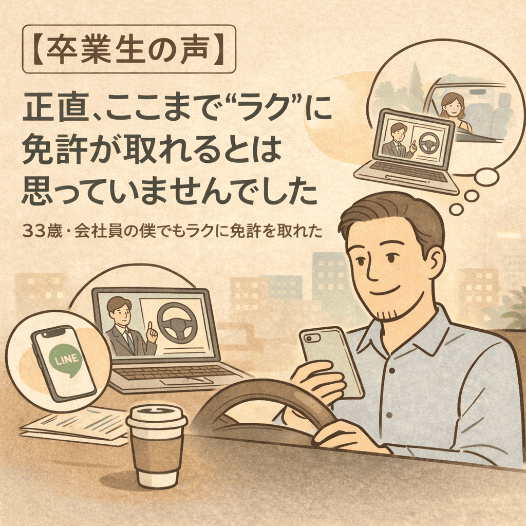従来の教習所と違い、場所や時間を選ばず、自宅で自分のペースで学習可能!録画講義で何度でも復習でき、交通費や宿泊費も不要。効率的かつ経済的に免許取得を目指せます。